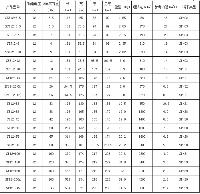 1. 容量范围(C20):3.5Ah—245Ah(25℃)